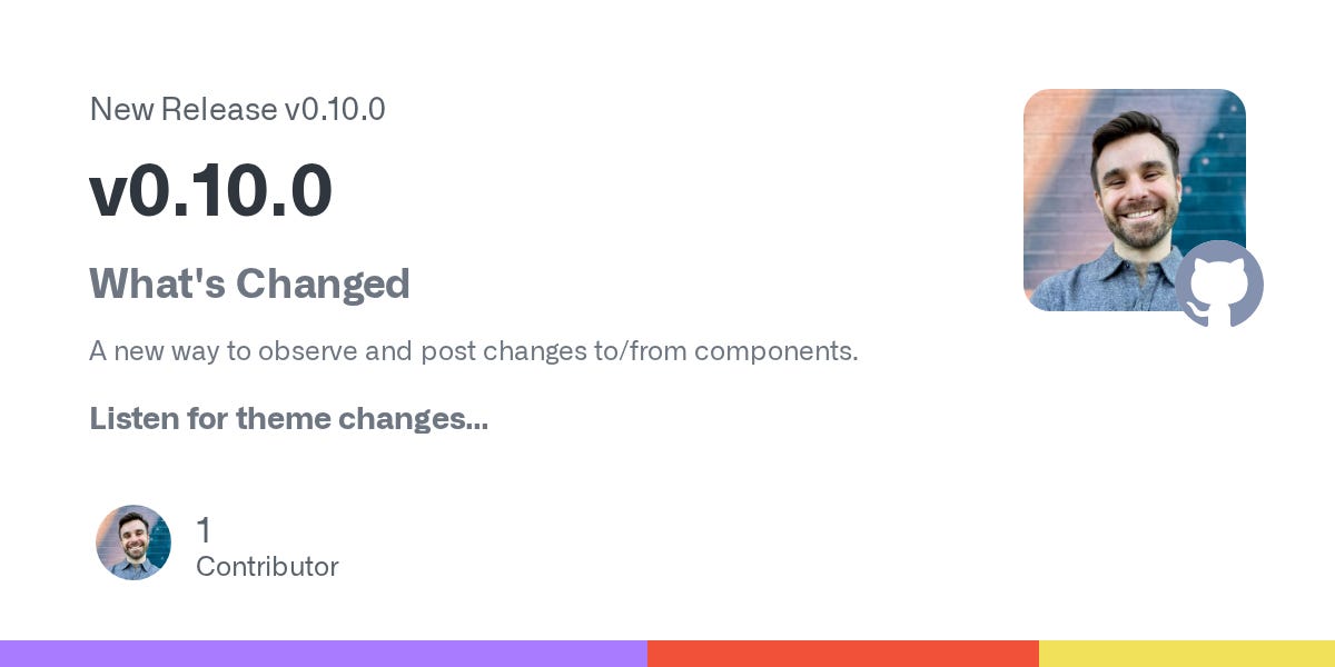 But using this component with a tab bar meant that switching themes on one tab could cause the other tabs to become out of sync. And there was no way for developers to know when the theme was updated. Until now!