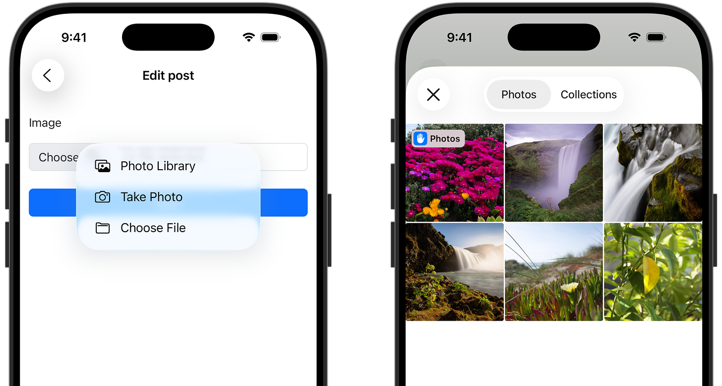 <%= form.file_field :image, accept: "image/jpg,image/jpeg,image/png" %>And… that’s it! This just works on iOS and Android. Users can select photos from their library, take a new photo, or even choose a file from the device.