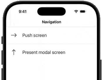 In native iOS and Android apps we can present screens as modals, having them slide up from the bottom instead of from the side. Modals provide focused, interruption-style experiences that are ideal for short, self-contained tasks.
